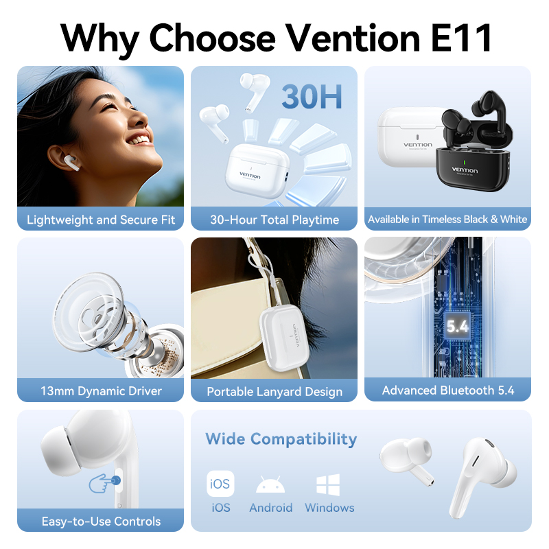 ✅ Мгновенное и стабильное соединение — Чипсет Bluetooth 5.3 обеспечивает быстрее сопряжение, более низкую задержку и устойчивый сигнал без обрывов в радиусе до 10 метров.